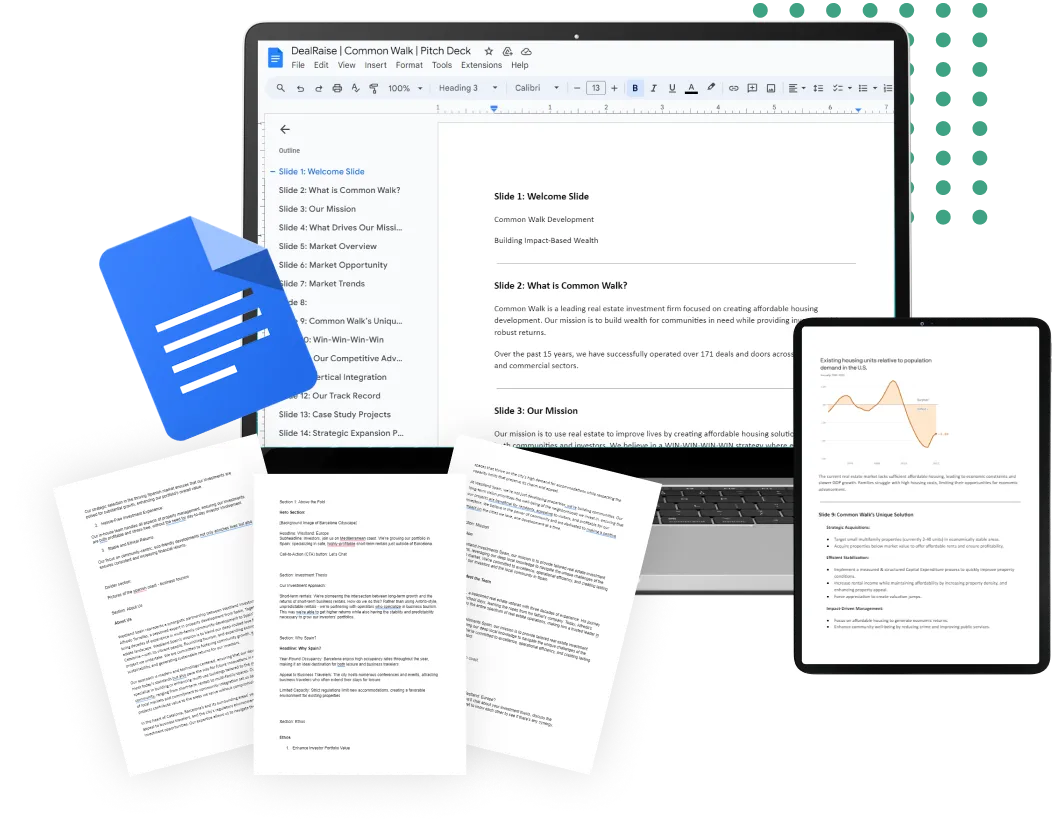 We’ll write, design, and create a custom pitch deck for your deal that persuades investors to give you money.
